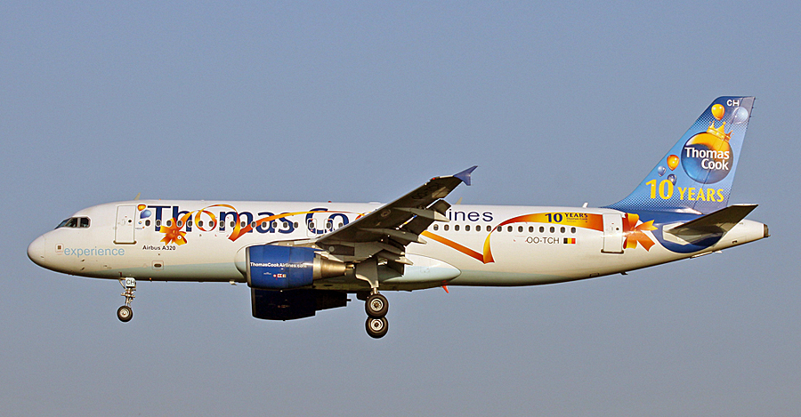 years� opschriften: Thomas Cook Airbus A320-214 OO-TCH. (Niels Quist, 24 mei