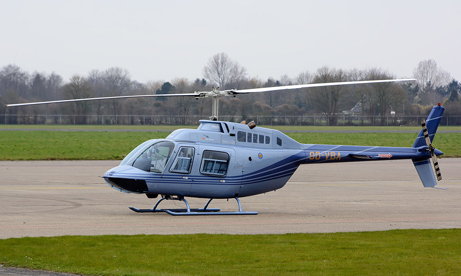 Vaak te zien in ons land: Bell 206B-3 Jet Ranger 3 OO-VBA. (Simen