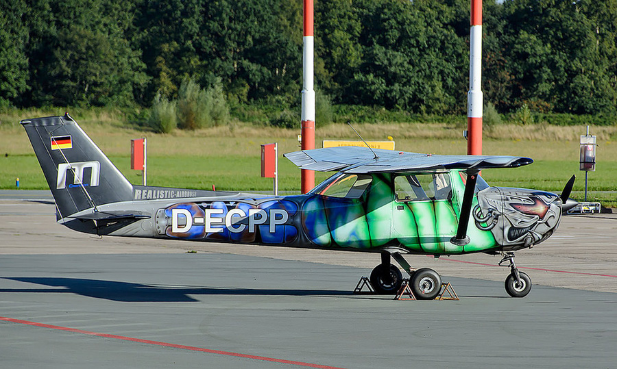 Angstaanjagend beschilderde Reims/Cessna FA150L Aerobat D-ECPP.