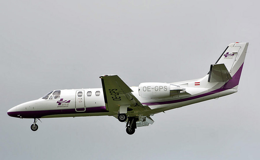 OE-GBE en Cessna 550 Citation Bravo OE-GPS van Tyrol Air Ambulance.