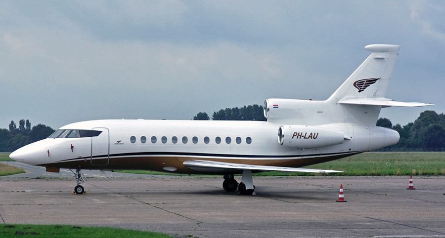 Twee Dassault Falcons van Exxaero: 900EX PH-LAU en 900C PH-STB.