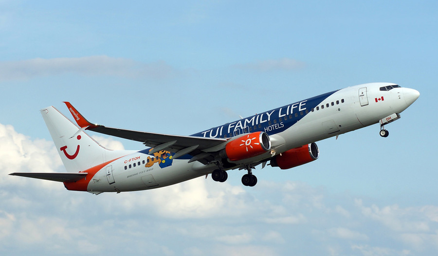 De voor TUI fly vliegende Boeing 737-8HX C-FTOH. (Hendrik Cazemier,