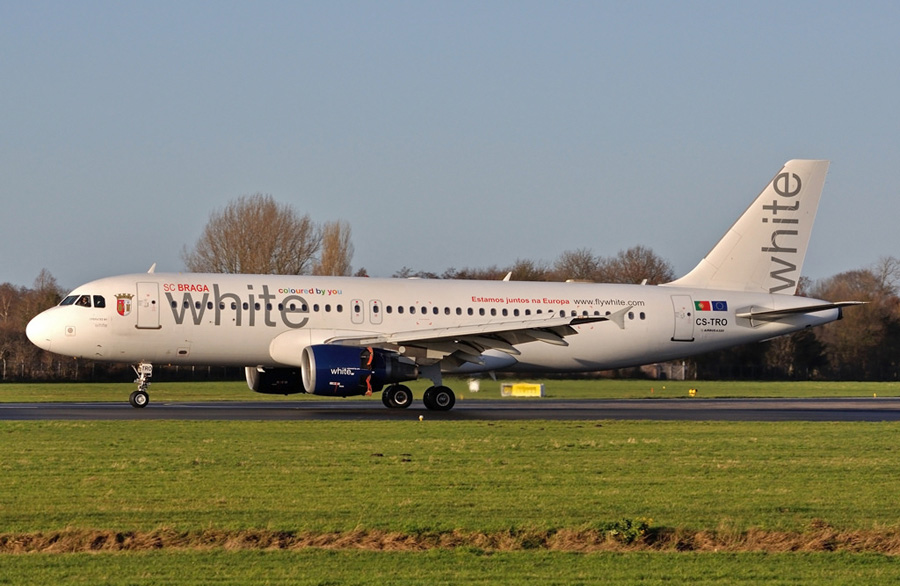 Braga opschriften voorziene White Airbus A320-214 CS-TRO.
