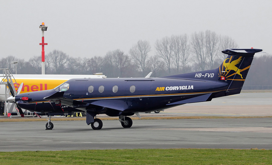 Drie maal een Pilatus PC-12/47E: de HB-FVD van Air Corviglia vliegt