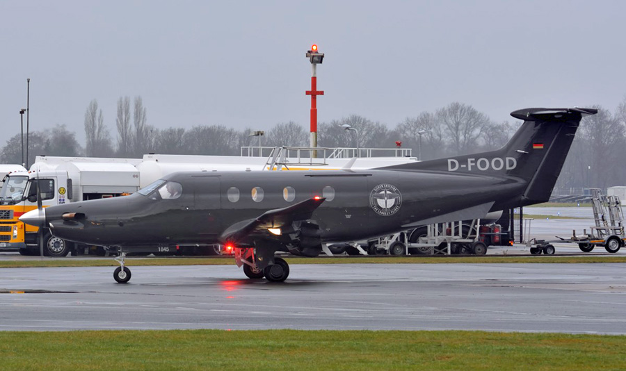 Pilatus PC-12/47E D-FOOD heeft nog steeds het logo op de romp van de