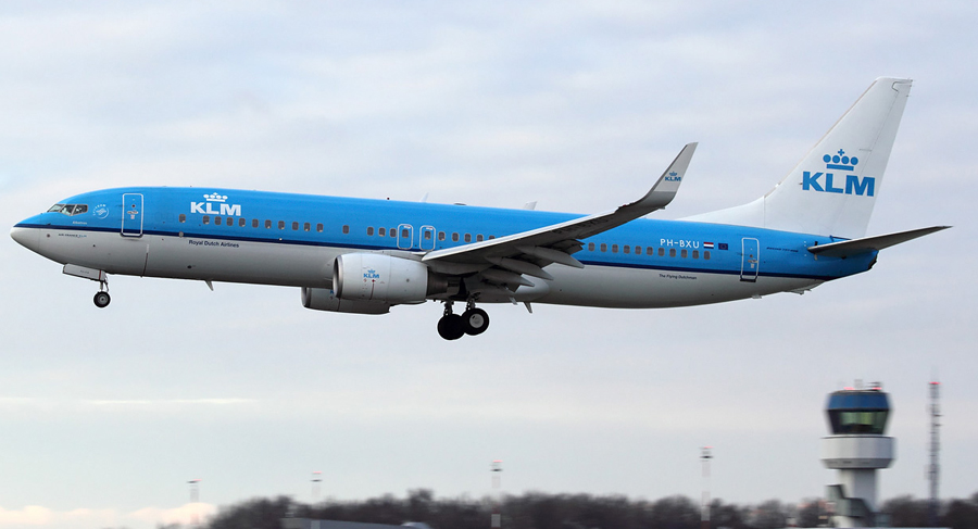 KLM 737 PH-BXU, die ook voor een testvlucht gepland stond, kwam op