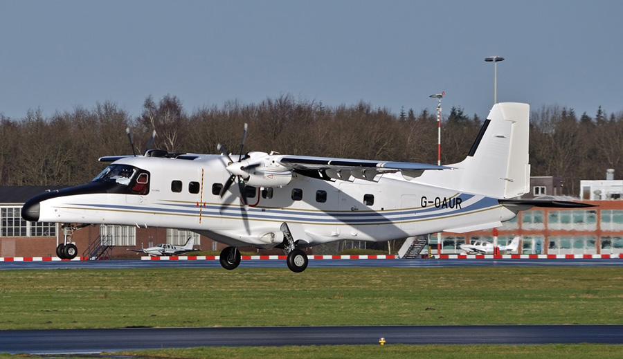 De door RUAG gebouwde Dornier 228-212 G-OAUR werd in Denemarken in
