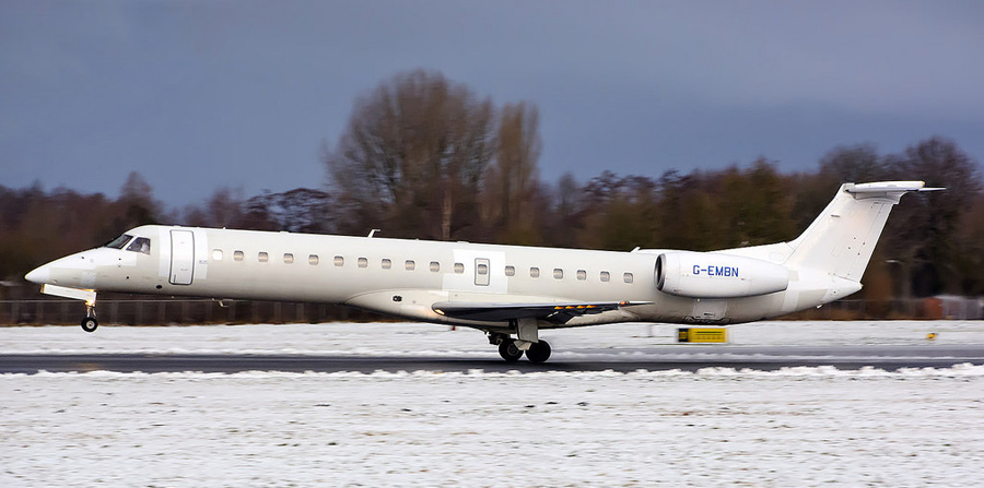 De geheel witte BMI Embraer EMB-145EP G-EMBN valt niet op in de