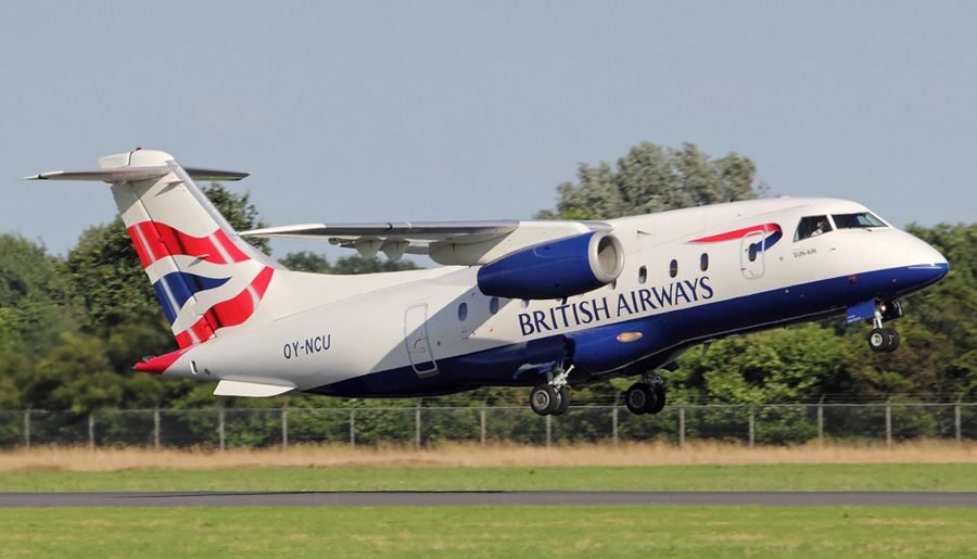 Air Dornier 328-300JET OY-NCU in de kleuren van British Airways.