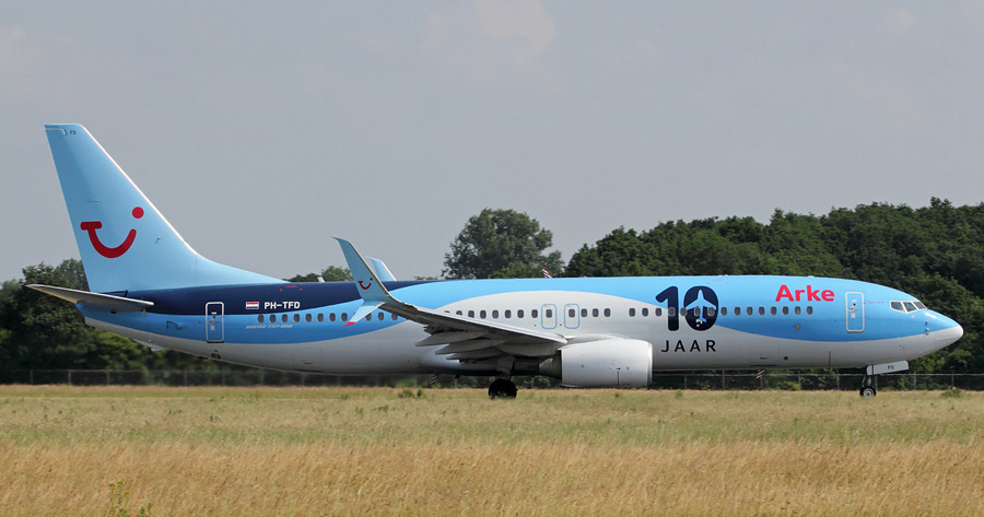 Boeing 737-86N Arke met 10 JAAR opschriften. (Jaap Niemeijer, 3 juli