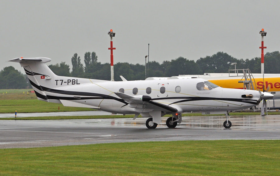 Pilatus PC-12/47E T7-PBL met een Zwitsers vlaggetje in de staart.