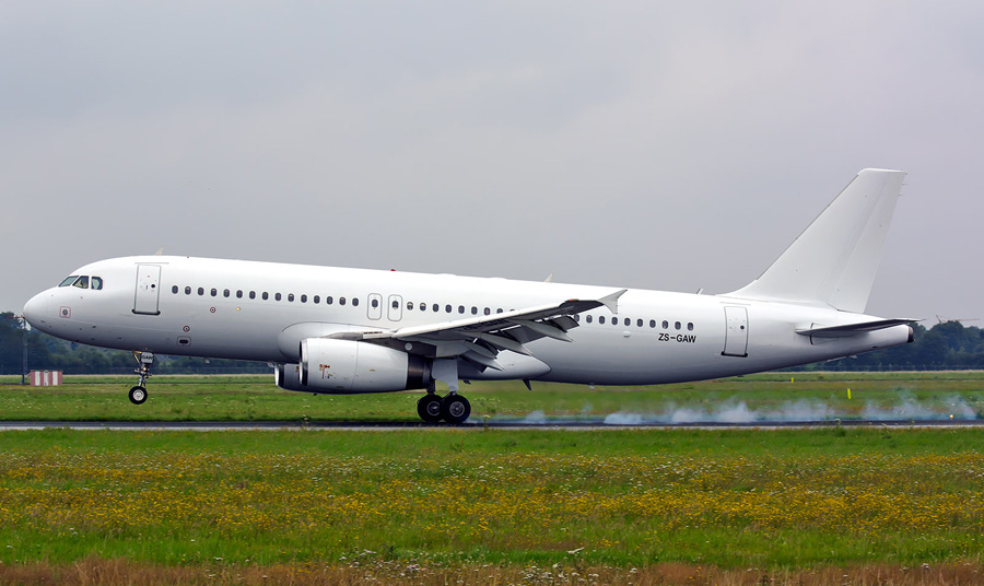 De witte Airbus A320-231 ZS-GAW vliegt tijdelijk voor Corendon.