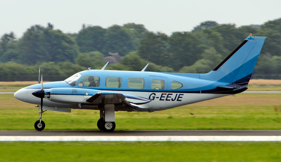 zo�n 42 jaar oud, Piper PA-31-310 Turbo Navajo G-EEJE. (Simen