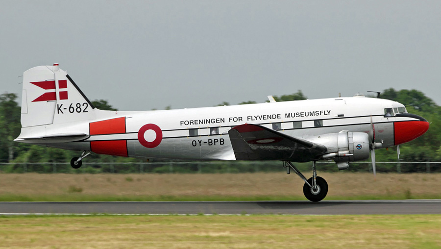 was de Deense DC-3 op de tweede; deze maakte een tankstop op weg