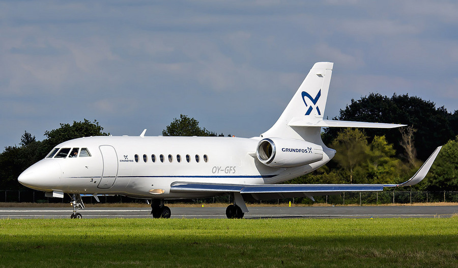 Dassault Falcon 2000LXS OY-GFS vliegt voor de firma Grundfoss.