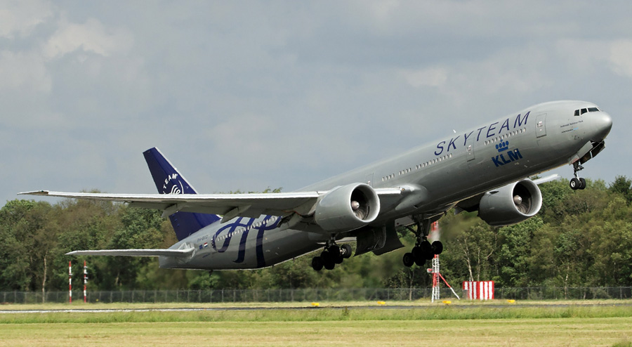 Fraaie actieplaat van KLM Skyteam Boeing 777-306ER PH-BVD. (Menno
