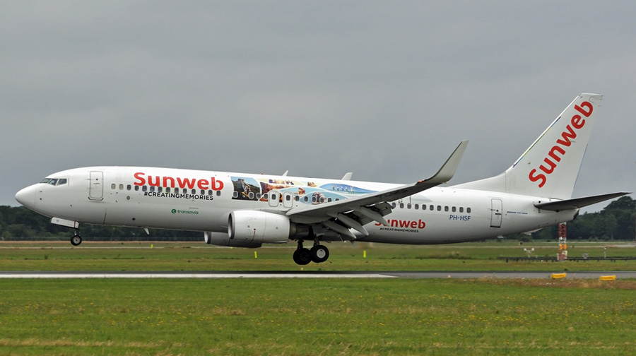 Transavia Boeing 737-8K2 PH-HSF in Sunweb kleuren. (Jaap Niemeijer,