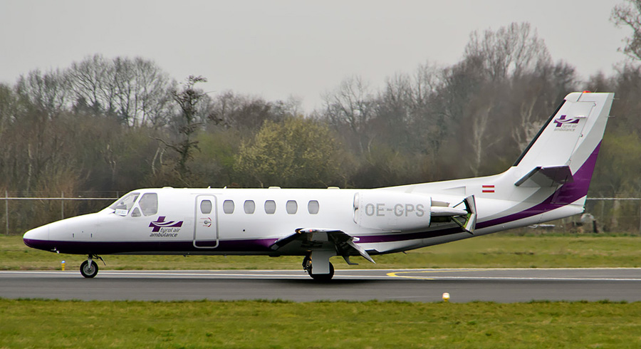 voor een approach en een medische vlucht van Tyrolean Air Ambulance.