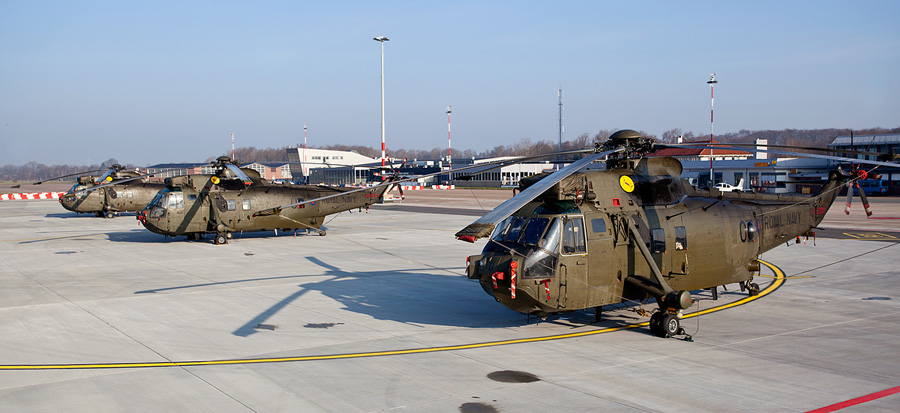 van drie Royal Navy Sea Kings.