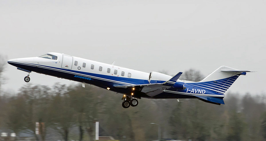 opname van Learjet 45 I-AVND van Avionord. (Simen Dorschman, 21