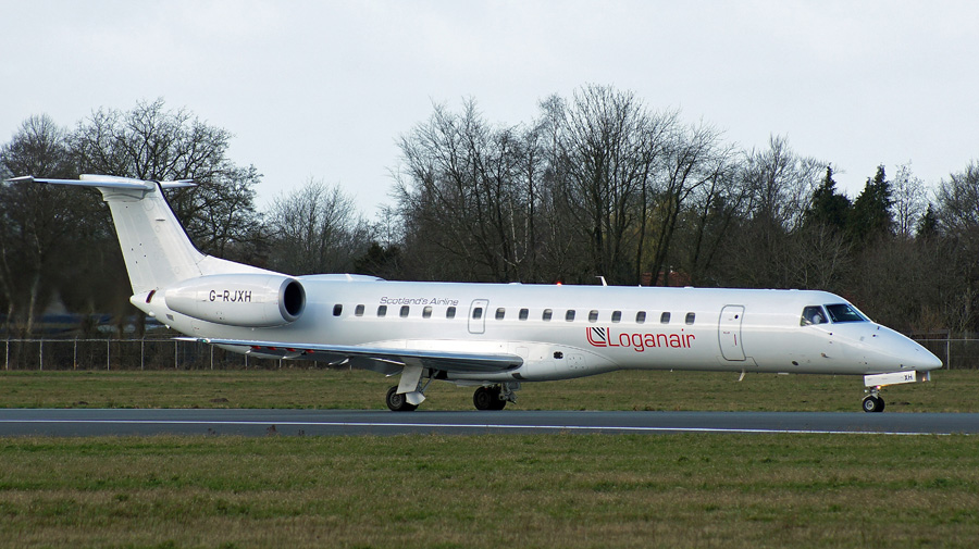 De geheel witte Loganair Embraer EMB-145EP G-RJXH. (Hendrik