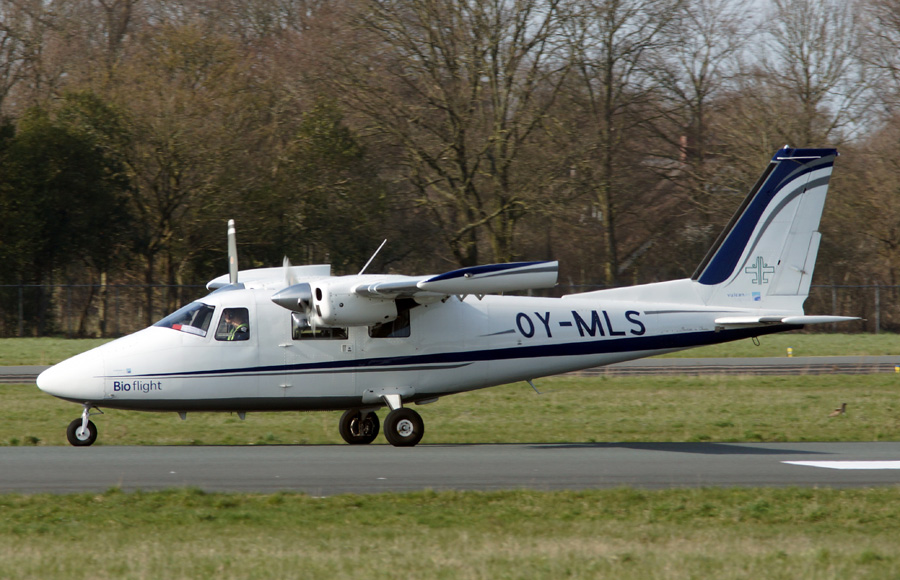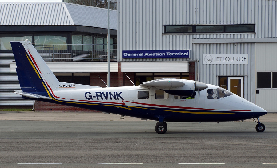 Partenavia P.68B G-RVNK van Ravenair en Bio flight Vulcanair P.68C