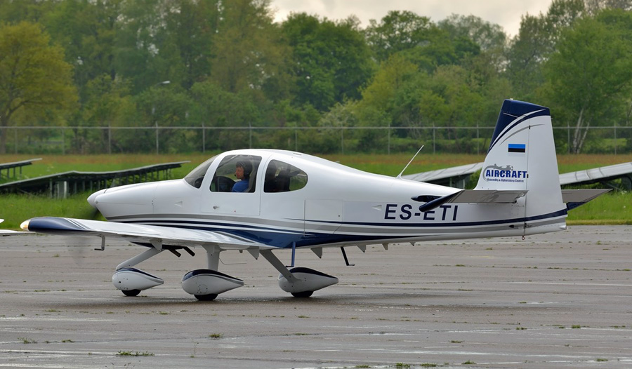 Van�s RV-10 ES-ETI heeft in de staart een logo met de tekst: