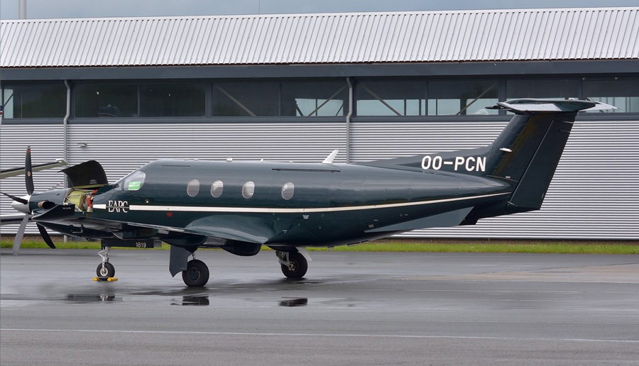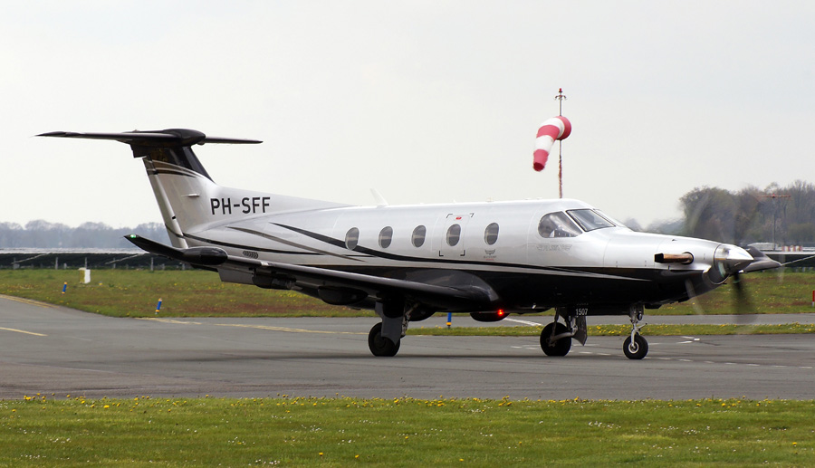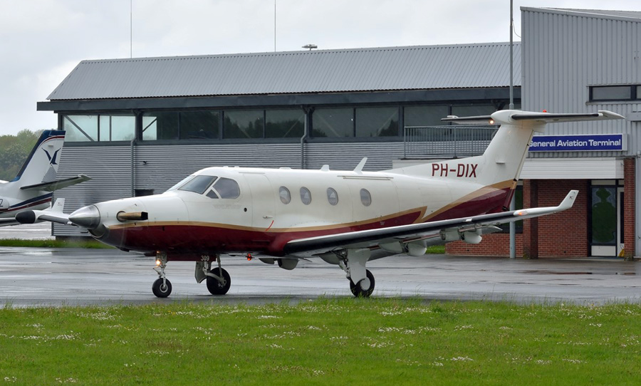 Pilatus PC-12/45 PH-DIX van het op Budel gebaseerde bedrijf Din-Air.