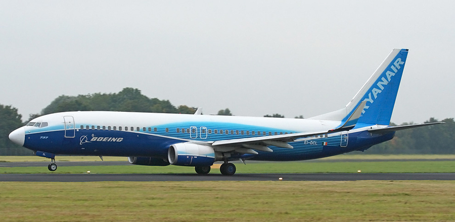 Ryanair Boeing 737-8AS EI-DCL in de bekende Boeing-kleuren. (Bert
