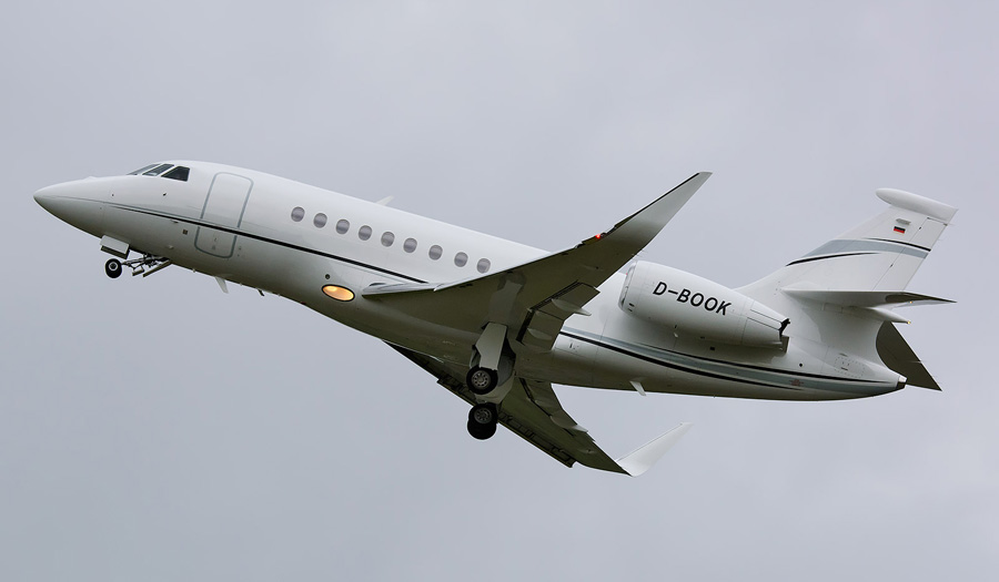 het kenmerk D-BOOK: ditmaal een Falcon 2000LX. (Simen Dorschman, 26
