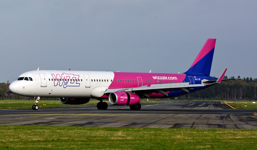 De eerste Airbus A321-231 van WizzAir op Groningen Airport Eelde: