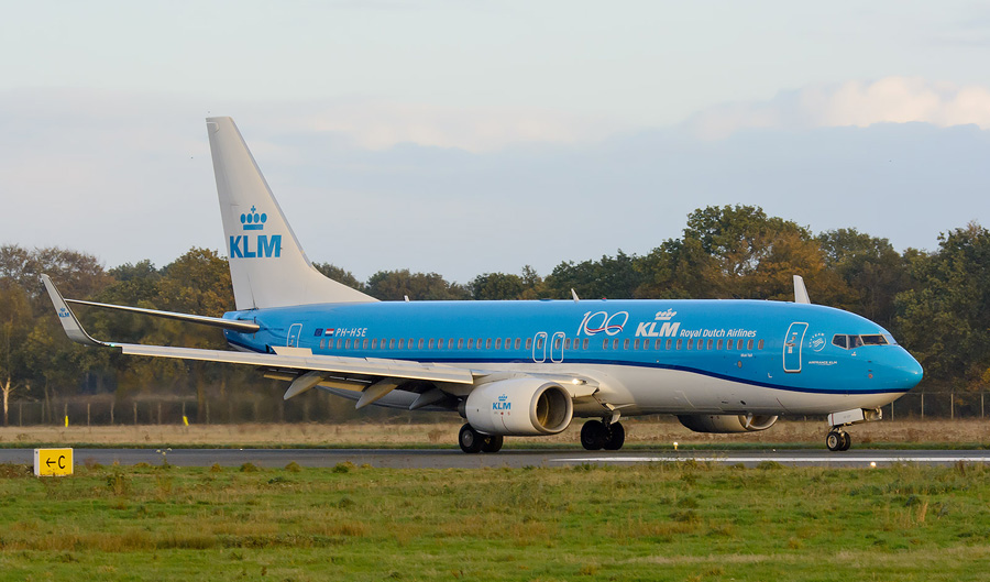 KLM Boeing 737-8K2 PH-HSE bezocht Eelde tijdens een testvlucht.