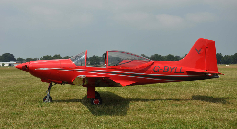 op EHHV is de fraaie Sequoia F8L Falco G-BYLL. Hij stond er al