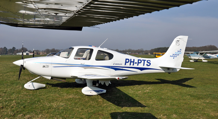 Cirrus SR20 PH-PTS met NNAC logo op de staart. (Kees van Aggelen, 8 maart 2014)