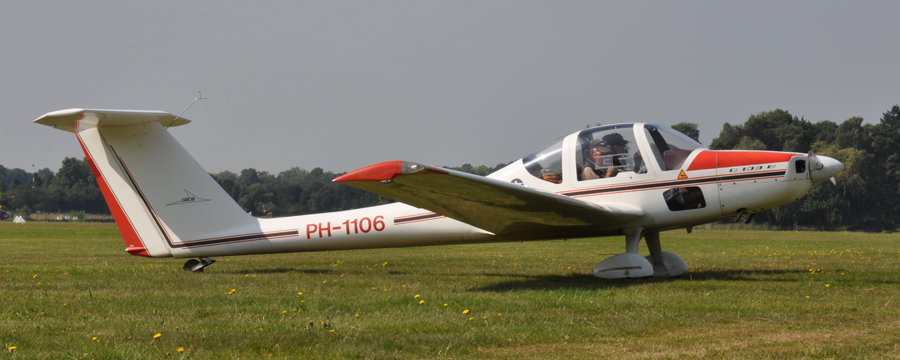 Scheibe SF.23C Sperling D-ENZE hoort huis op Lelystad. (Kees
