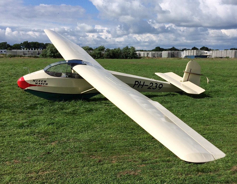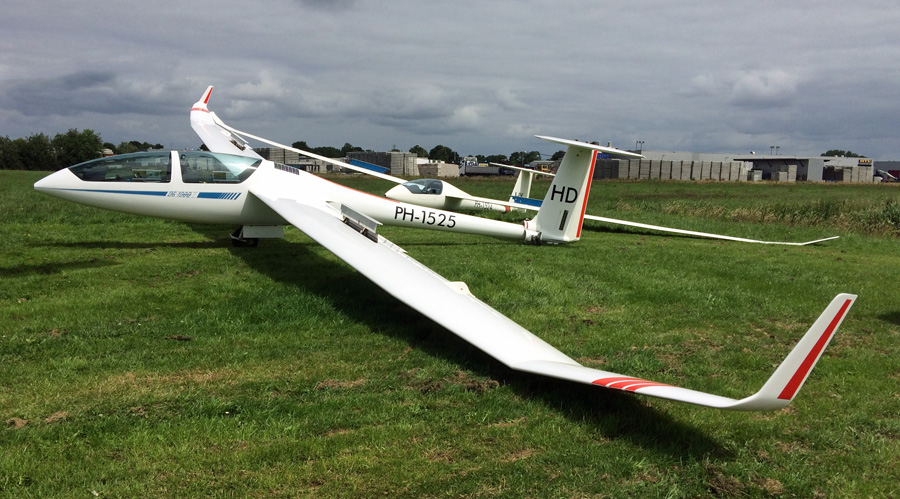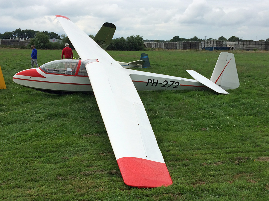 Schleicher Rh�nlerche II PH-239 werd in 1956 gebouwd. (Eric Munk, 19 juni 2016) Iets jonger is Schleicher K 7 Rh�nadler PH-272 die uit 1961 stamt. (Eric Munk, 19 juni 2016)