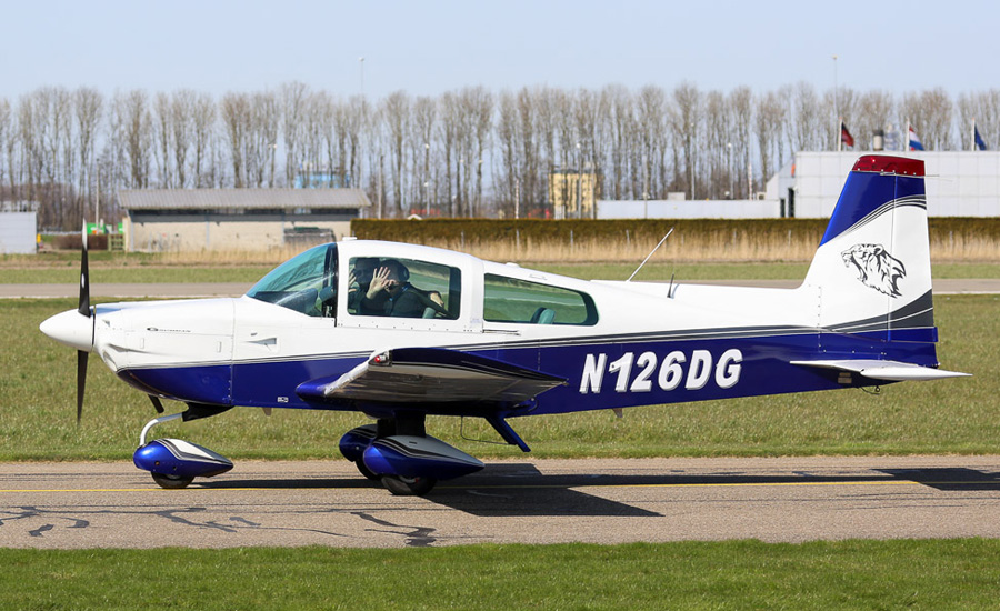 Grumman American AA-5B Tiger N126DG werd in 1975 gebouwd. (Berend