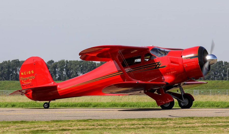 In 1944 gebouwd, deze bijzonder fraaie Beech D17S Staggerwing NC16S