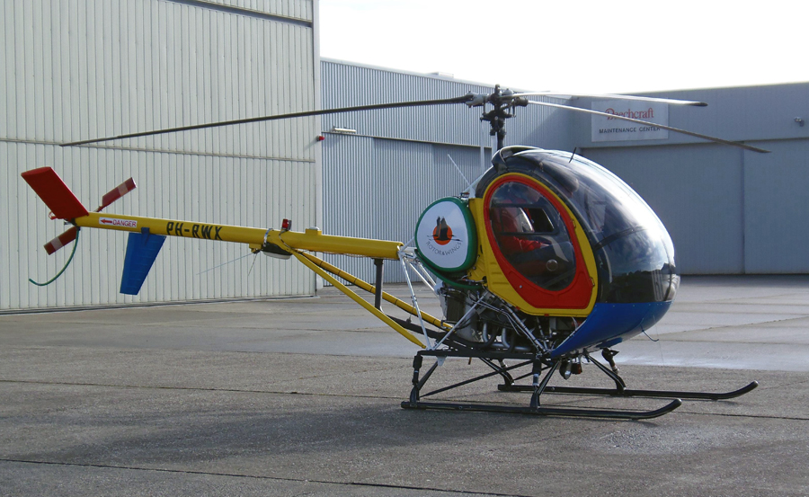 2012) en de vrolijk gekleurde Schweizer 269C PH-RWX van Rotor &