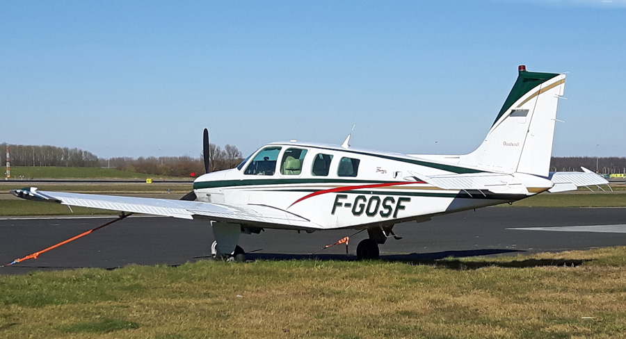 Op 29 augustus 2017 maakte Beech A36 Bonanza F-GOSF een