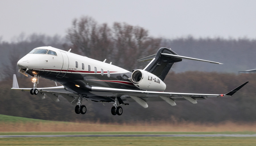 Bombardier BD-700-1A10 Challenger 350 LX-GJM van Global Jet Luxembourg, die op