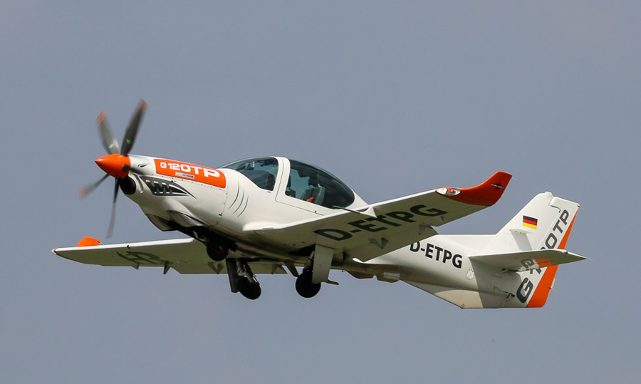 Farnborough deelnemer Grob G-120TP D-ETPG maakte een tankstop op