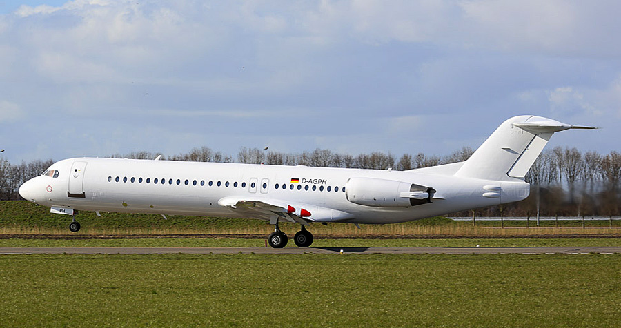 Avantiair Fokker F28 Mk0100 D-AGPH vertrekt geheel wit naar