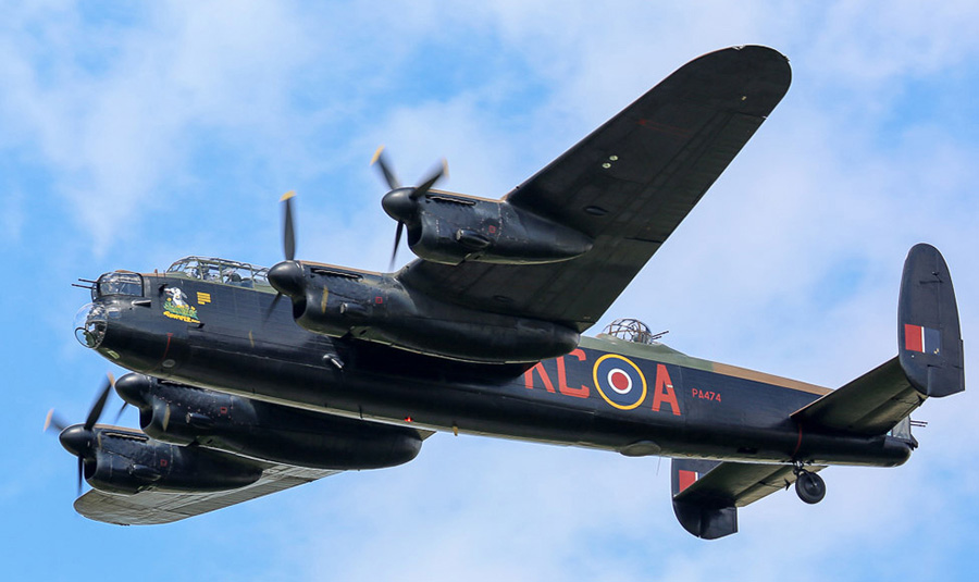 683 Lancaster B1 PA474 maakt een flyby over de baan van Lelystad. (Berend Jan
