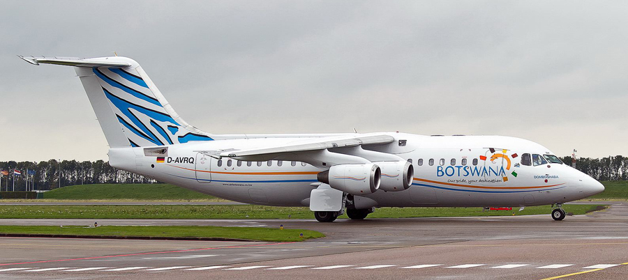 BAe146-200 RJ85 D-AVRQ werd op Lelystad omgespoten in Air Botswana