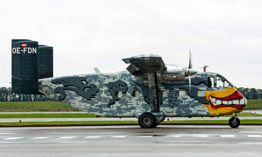 Gulfstream G150 voor een paintjob. De Oostenrijkse Skyvan die op de