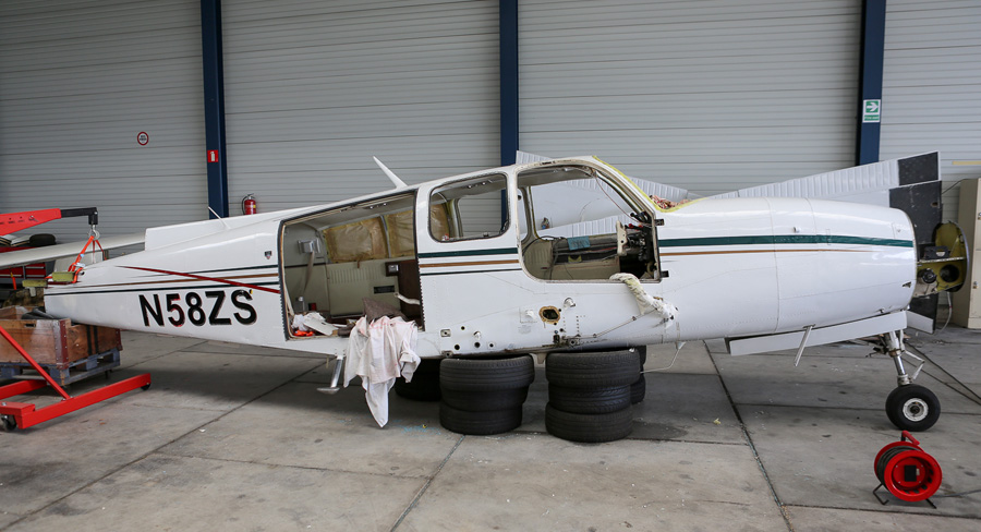 Beech 58 Baron N58Z binnen bij FLOW Aeronautical. (Berend Jan Floor,