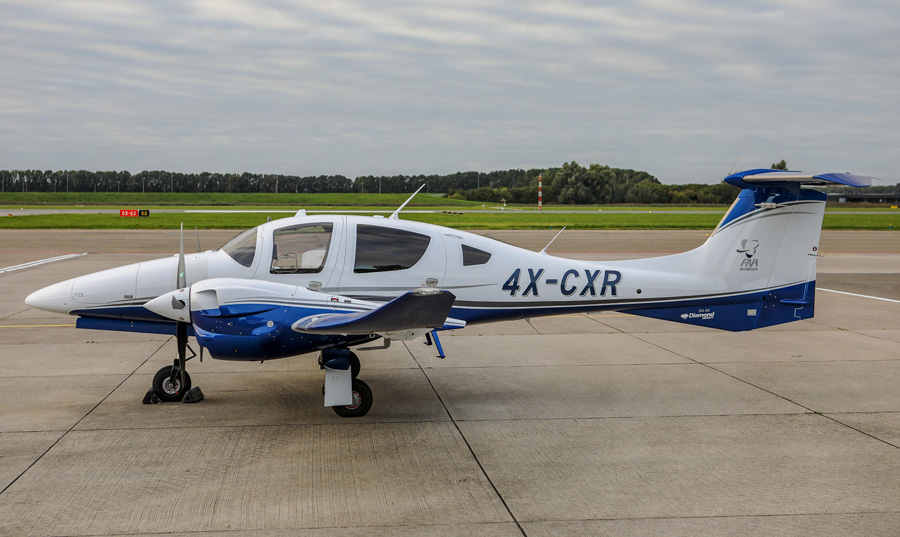 Diamond DA 62 4X-CXR vliegt bij de vliegschool FN Aviation. Het