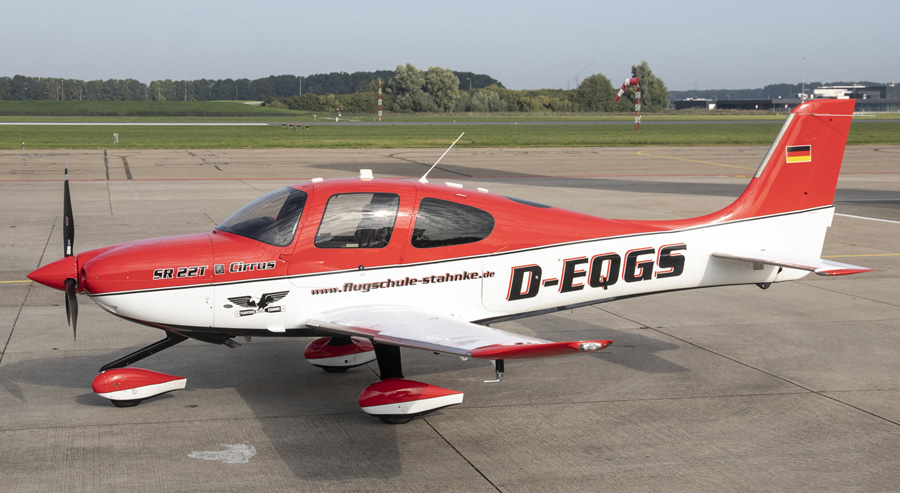 Op de Cirrus SR22T D-EQGS van de Flugschule Stahnke zijn het type en