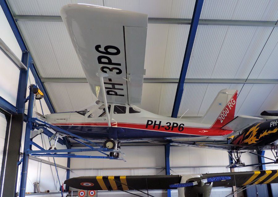 Tecnam P 92-2000RG Echo PH-3P6 hangt aan het plafond. (Andr� van Aanholt)